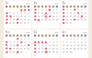 1月〜5月の休診日です